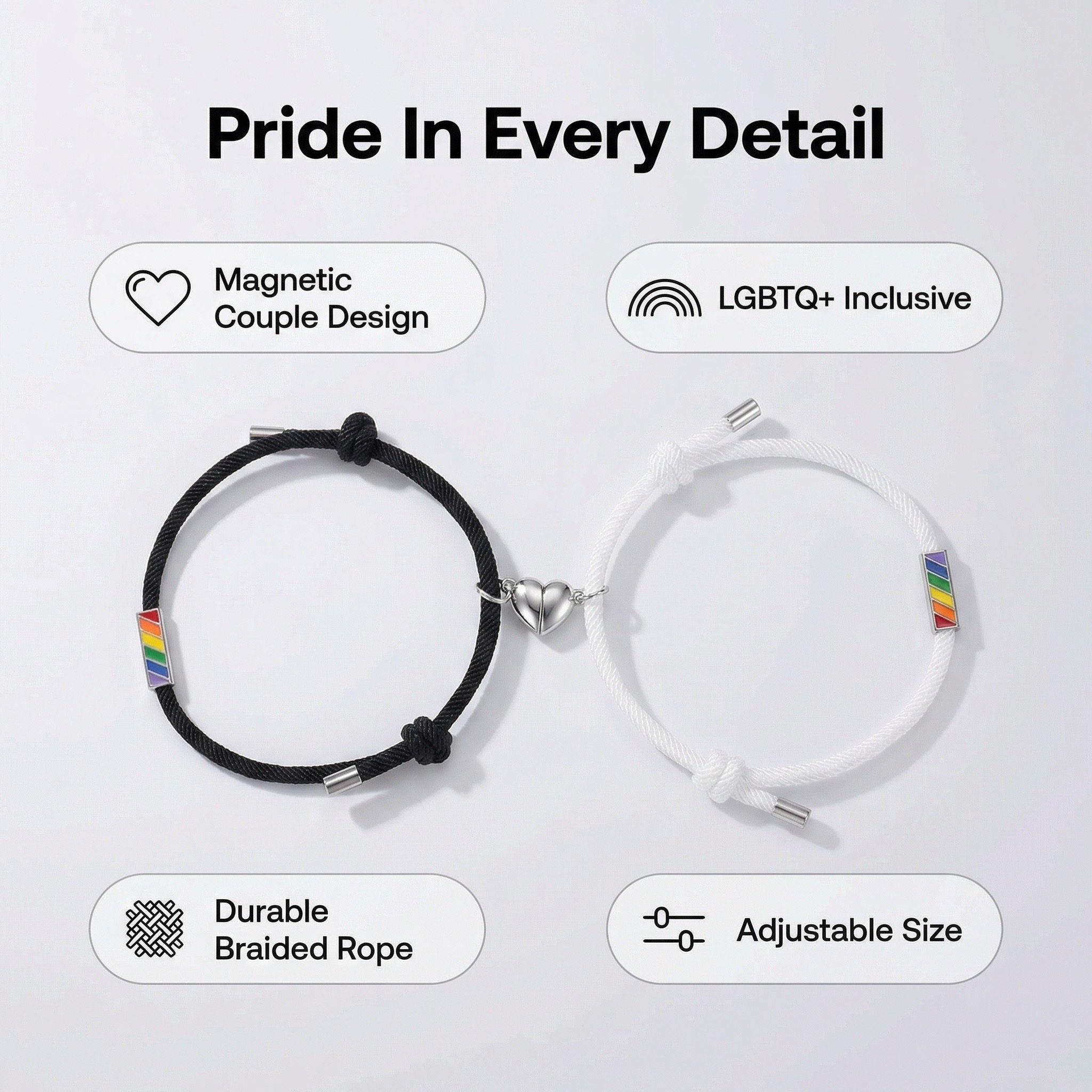 The black and white double ropes are accompanied by a rainbow, symbolizing the close connection and mutual reflection among lovers, friends, or partners.